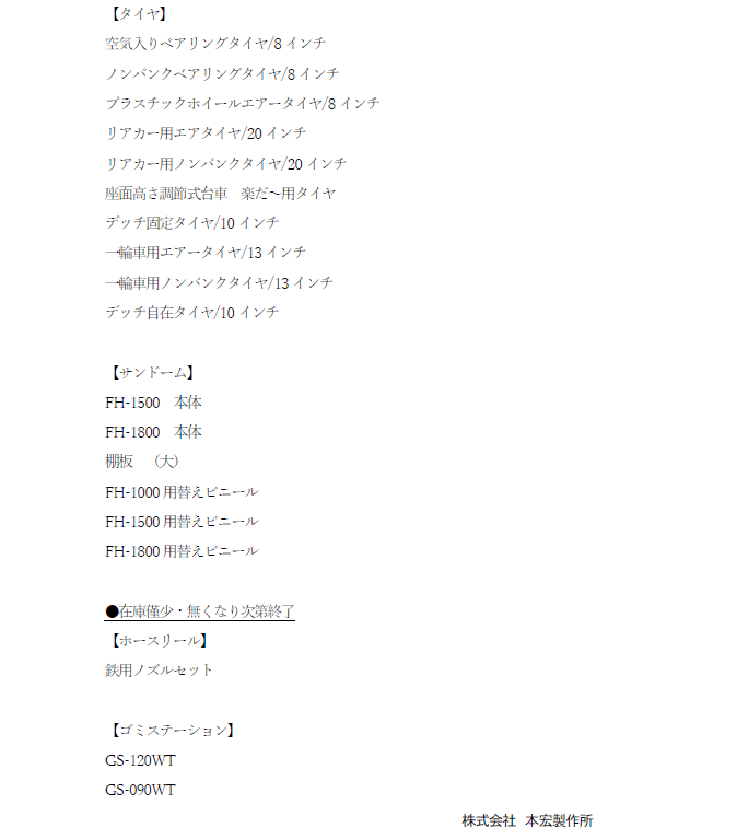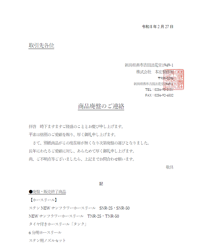 誠に勝手ではございますが弊社製造及び販売の一部製品につきまして