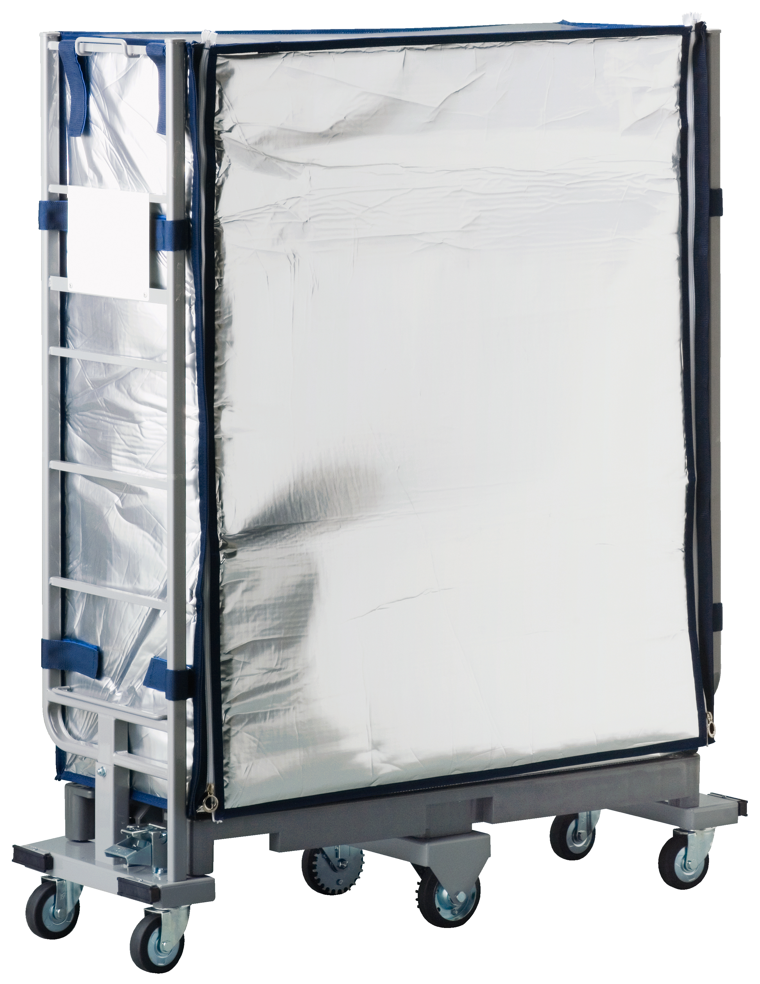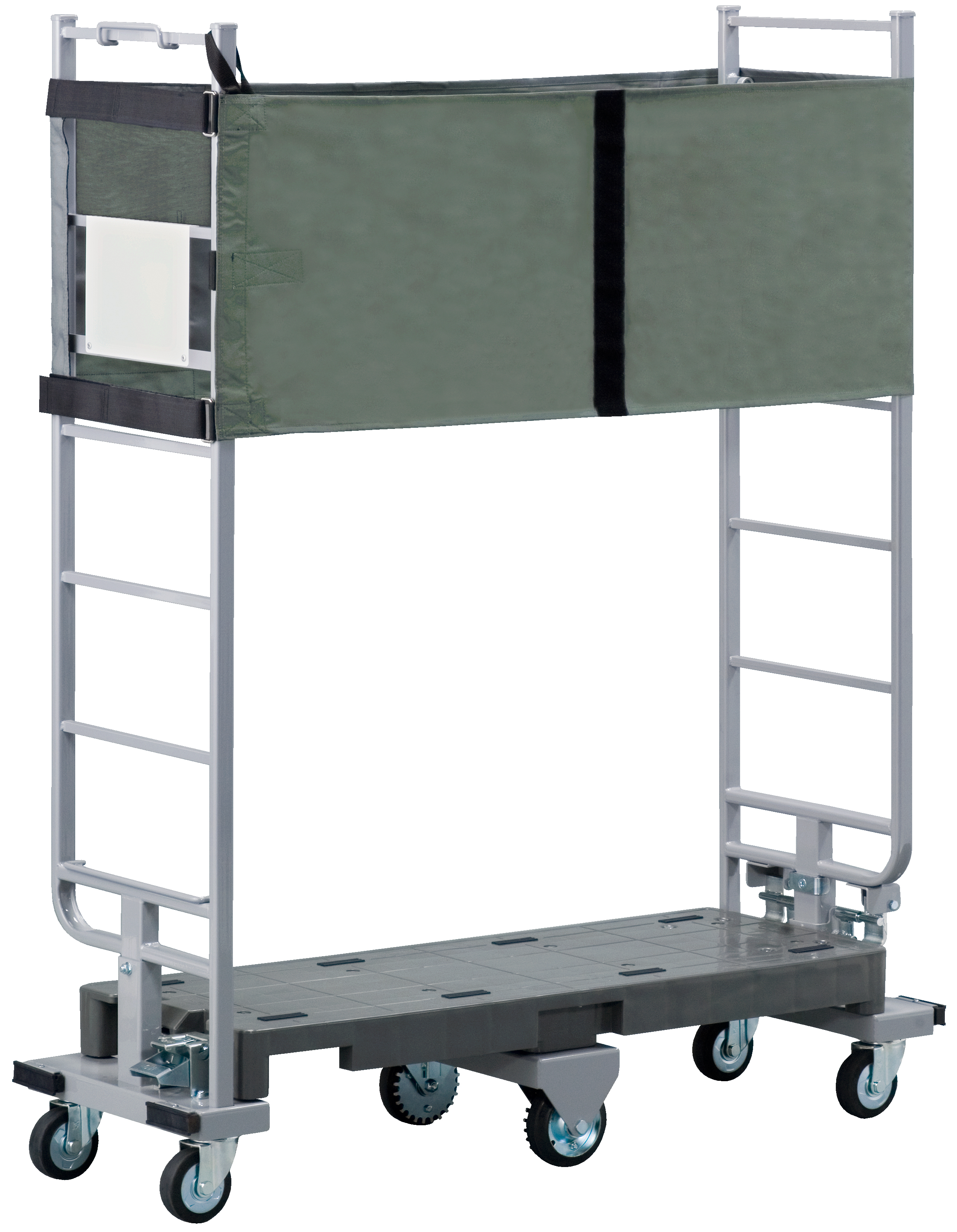 物流センターから店舗まで、輸送・陳列・保管可能なネスティング式6輪台車